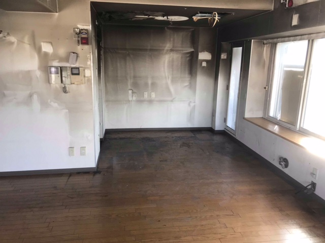 その後、解体工事でとりきれなかった壁や天井に付着したススの除去作業になりますが、