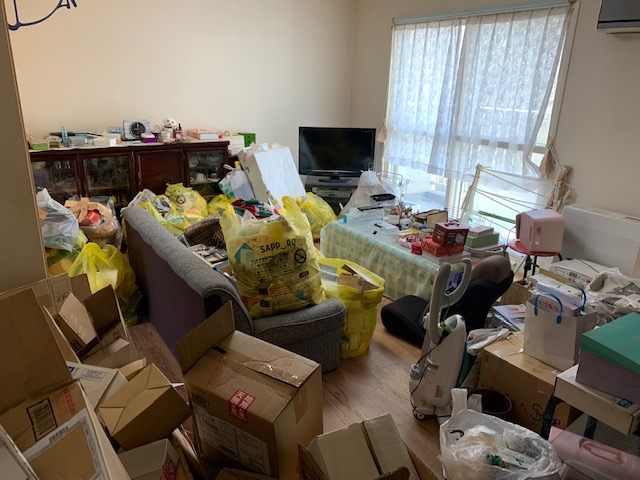 ソファーで亡くなっており、不幸中の幸いで腐敗臭などは殆どしない状態でしたのでご遺品整理がメインとなります。