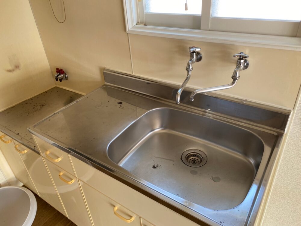 キッチンは錆が酷く、錆取り剤を使用してなるべく除去しますが、やりすぎるとステンレスに穴が開いてしまうこともあるのでそこそこで終了しました。
