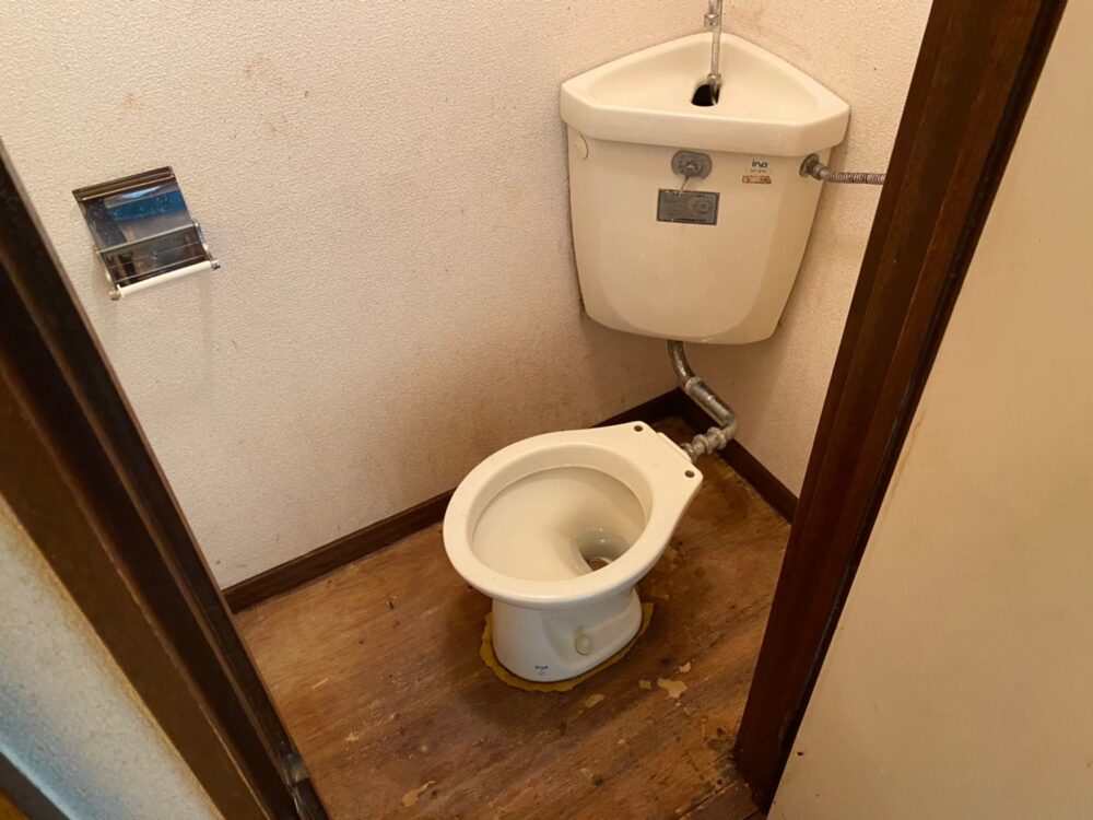 便座は壊れていたので外して廃棄、床もCFがぬちゃぬちゃでしたのでとりました。