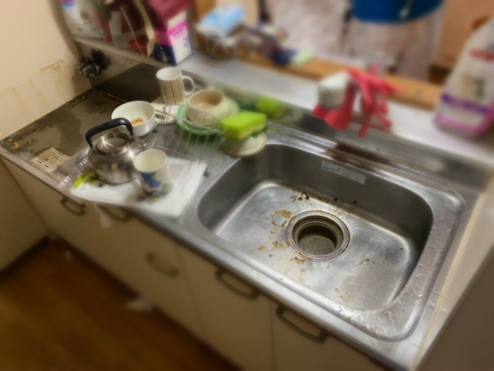 弊社が片付けに入る前にも違う片付け業者さんが入ったことがあるそうですが、シンクなどを見ると固いパッドなどを使ったのか傷だらけになっていたのと錆が多かったので、攻めない程度に研磨し水弾きが良いようにしました。