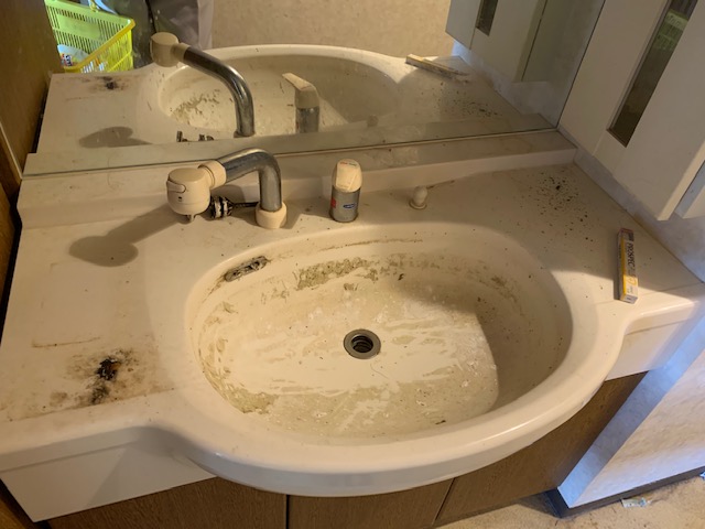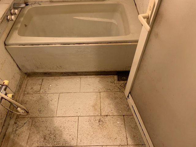 ここも排水口が詰まって水が溜まっていて、変な虫がウヨウヨしていましたが、普通に生活できるレベルになっています。