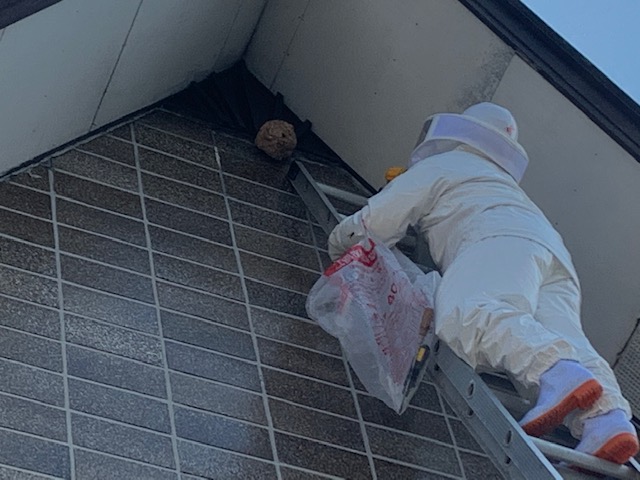コガタスズメバチの巣が結構高いところに出来ていたので排除です。