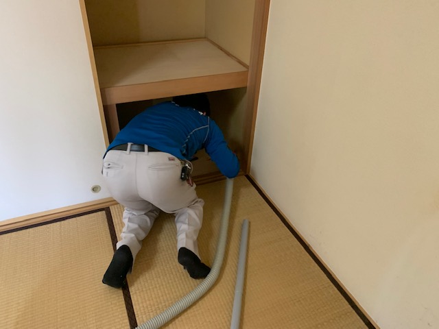 お部屋が空になったら掃除機かけをおこない、ご遺族様に最終チェックをして頂き問題なく終了。