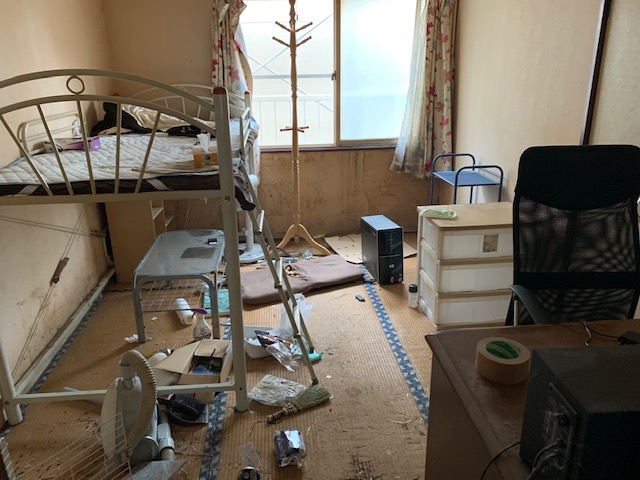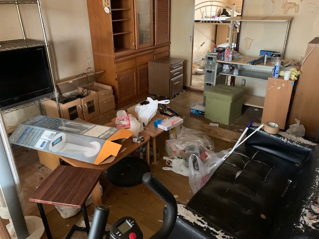 自分達でもある程度の片付けはしていたのですが、大型家具や家電、その他の部分は下記写真の通りかなり残っておりました。