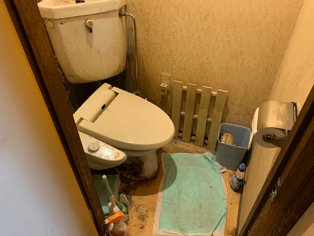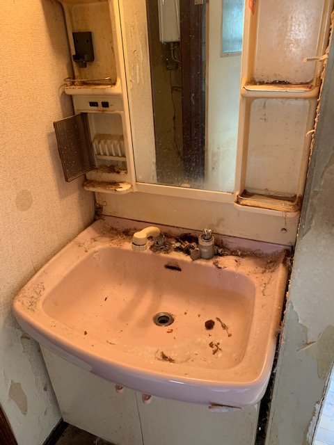 脱衣所部分が猫のトイレ(?)だったのか糞尿が一番凄いところで数センチの層になっており悪臭を放っていました。