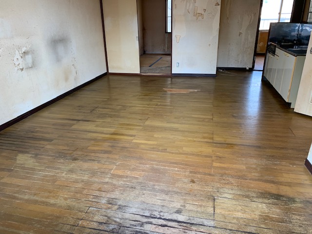 さすがに床が腐食しているところは清掃では治りませんのでリビング部分が一番痛んでいました。
