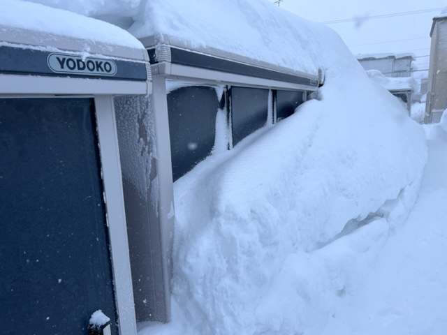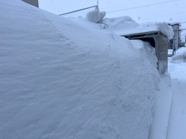我が家も雪を捨てる場所がなく物置が埋もれています。