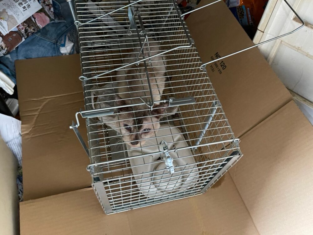 今回は部屋の片づけ作業前に猫の捕獲⇒保護という流れを先行して行いました。