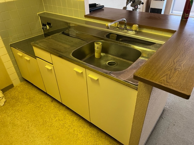 蛍光灯の色味のせいかキッチンが全体的に黄色く見えますが、実際に見ると印象は違います。