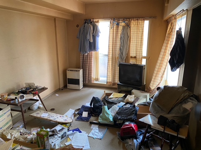 管理会社さんからは完全な原状回復はM様に請求しないので、中の家財撤去はして欲しいとのことでした。
