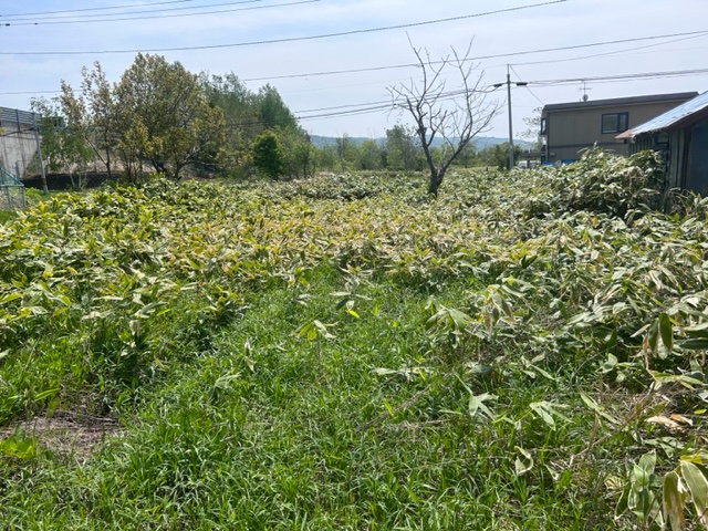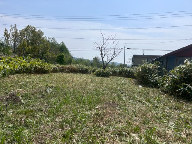 エンジン式刈払機で行うと2~3時間くらいはかかると思います。