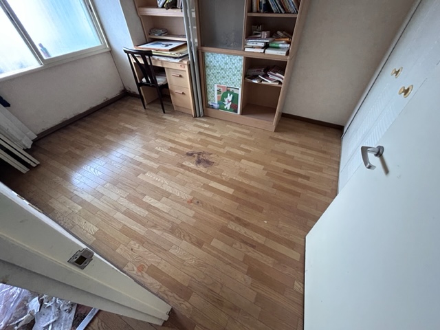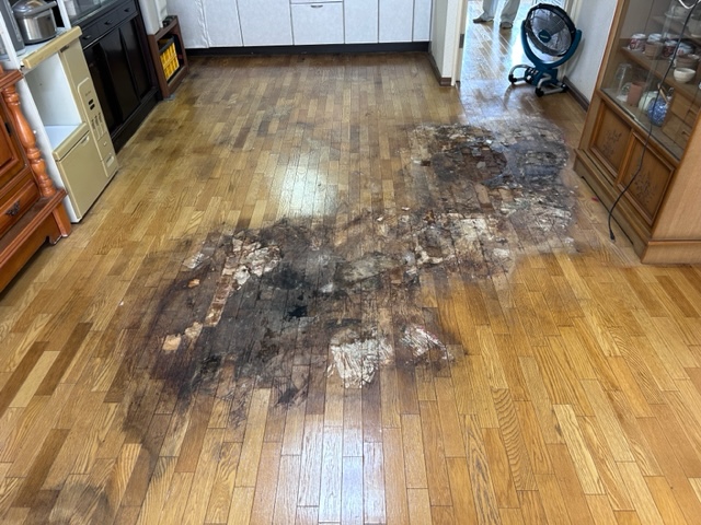 床が黒ずんでしまっているところは、何かを漏らしてしまって永年放置した状態だったため床板が腐っていました。