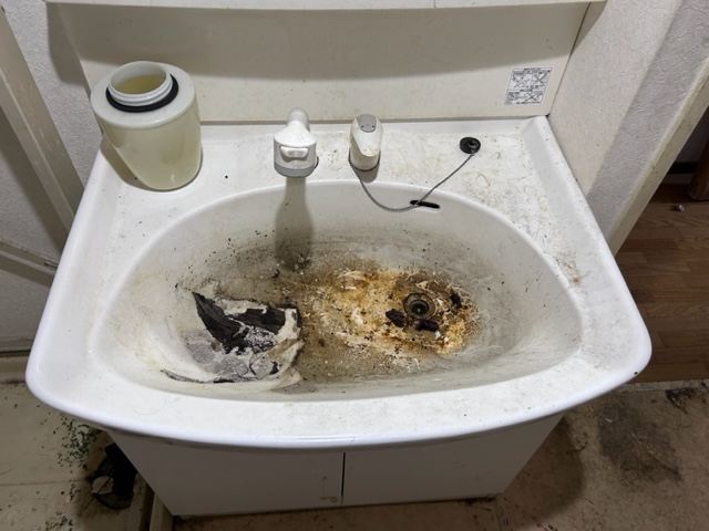 普段から水気をふき取ったりすれば、それほど汚くはならない箇所なんですが・・・汚部屋あるあるです。