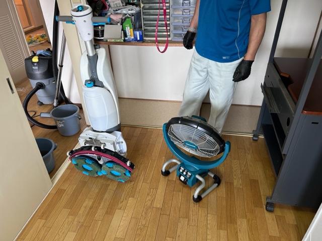 最後に各部屋の床清掃を行い、ワックス塗布を行います。