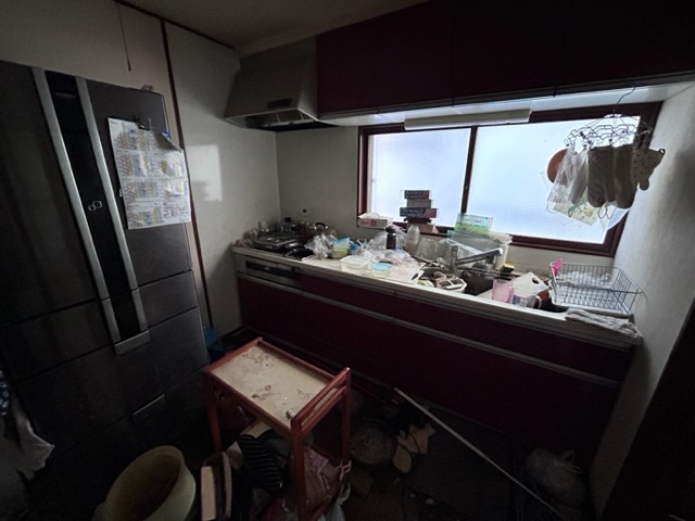 一階の遺品整理を行い、体液が漏れた床の周辺を薬剤を使用し清掃を行いました。