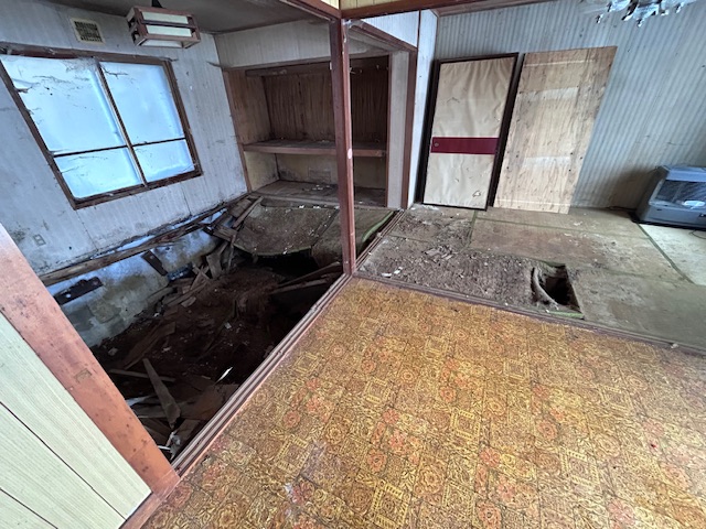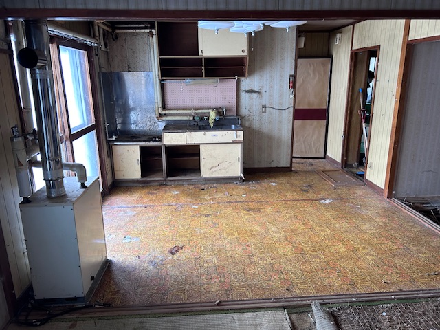 あちこち床が腐って抜けてたりして、大変危険な状態でしたがコンパネを敷いたりしてスタッフ一同怪我なく作業完了することが出来ました。