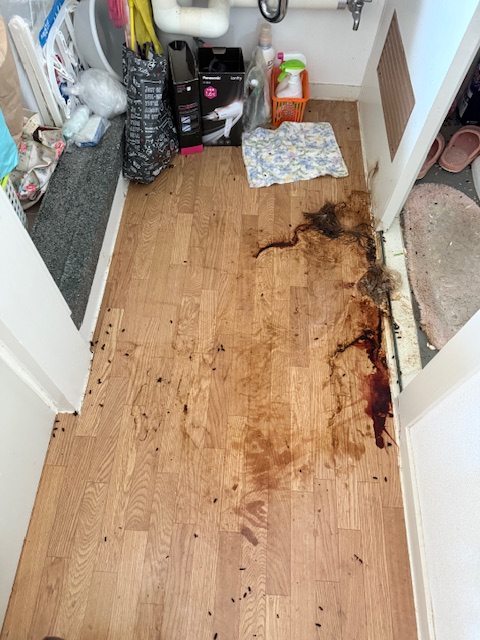 今回のご依頼に関しては、管理会社さんとご遺族様が話し合って体液除去のみで消臭作業は無しの作業内容です。